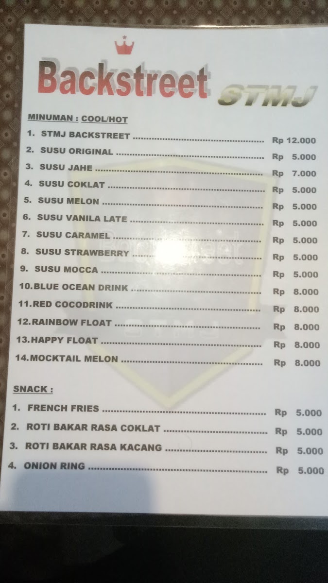 STMJ Backstreet (Ngopak - Pasuruan) offers a refreshing twist on the classic Indonesian health drink, STMJ (Susu, Telur, Madu, Jahe). Nestled in the heart of Pasuruan, this cafe has quickly gained a loyal following thanks to its smooth, flavorful beverages that stand apart from typical STMJ offerings. Customers praise the balanced taste that is free from unpleasant odors, making it both comforting and invigorating. Beyond the signature STMJ, the cafe presents a variety of milk-based drinks with unique flavors, appealing to a broad palate.